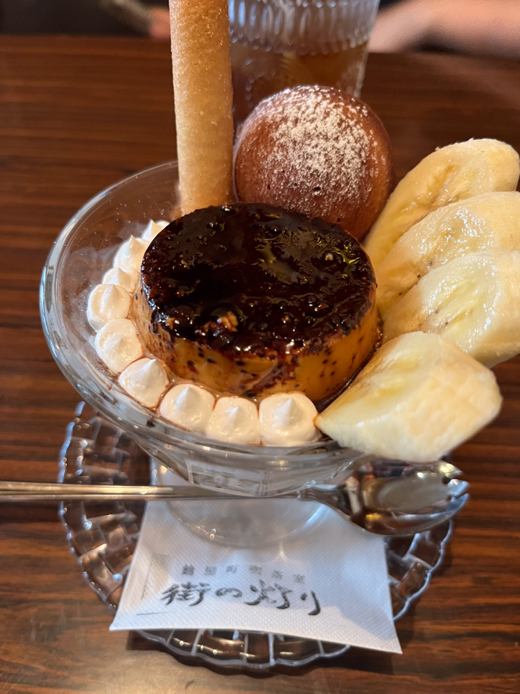 味のあるイラストで描かれた「喫茶店のプリン」とホットのブレンド珈琲を注文。コーヒーは街の灯りオリジナルブレンドだそうです。